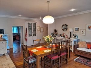 We have five rooms with double beds, accommodating up to five couples plus one room with three single beds. As this is a Georgian Farmhouse not all bathrooms have private bathrooms